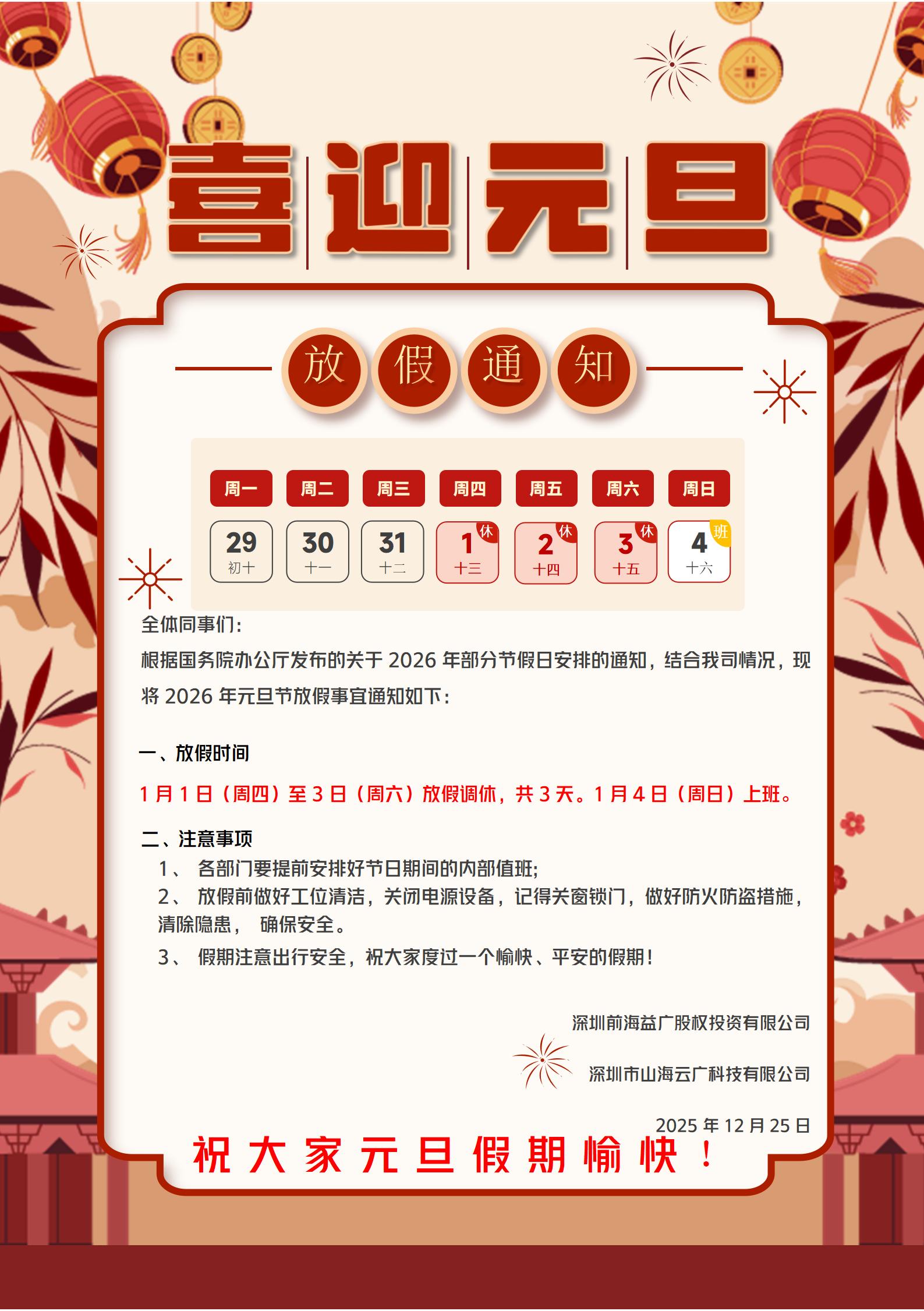 前海益广2026元旦放假通知